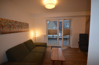 Das Apartment mit einer Loggia befindet sich im 2. OG mit Blick zum schönen Auricher Marktplatz gelegen. Bis zum 1.OG können Sie den Fahrstuhl nutzen, zum 2. OG führt eine Treppe. Es ist ca. 75 m² groß und für max. 2 Personen und 1 Kind im Alter von bis zu drei Jahren buchbar.